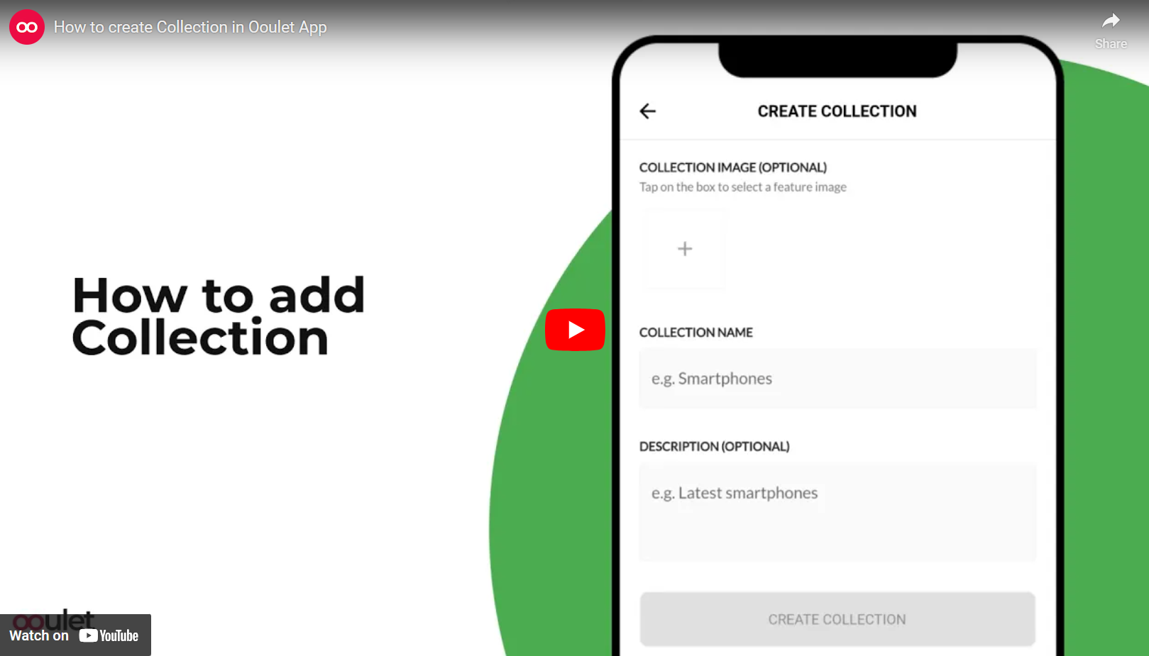 - To add any Collection Click on + Sign in Main Menu (Bottom of Ooulet App).