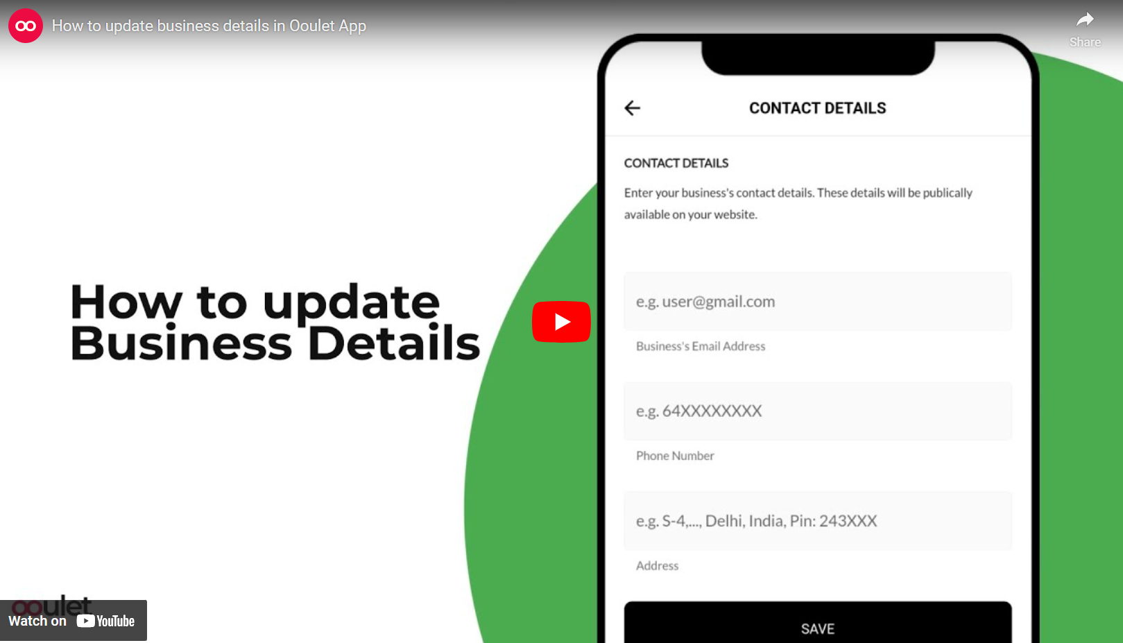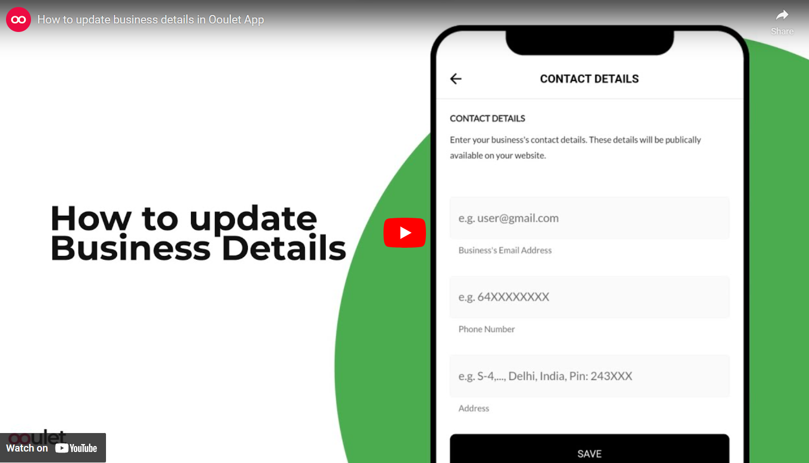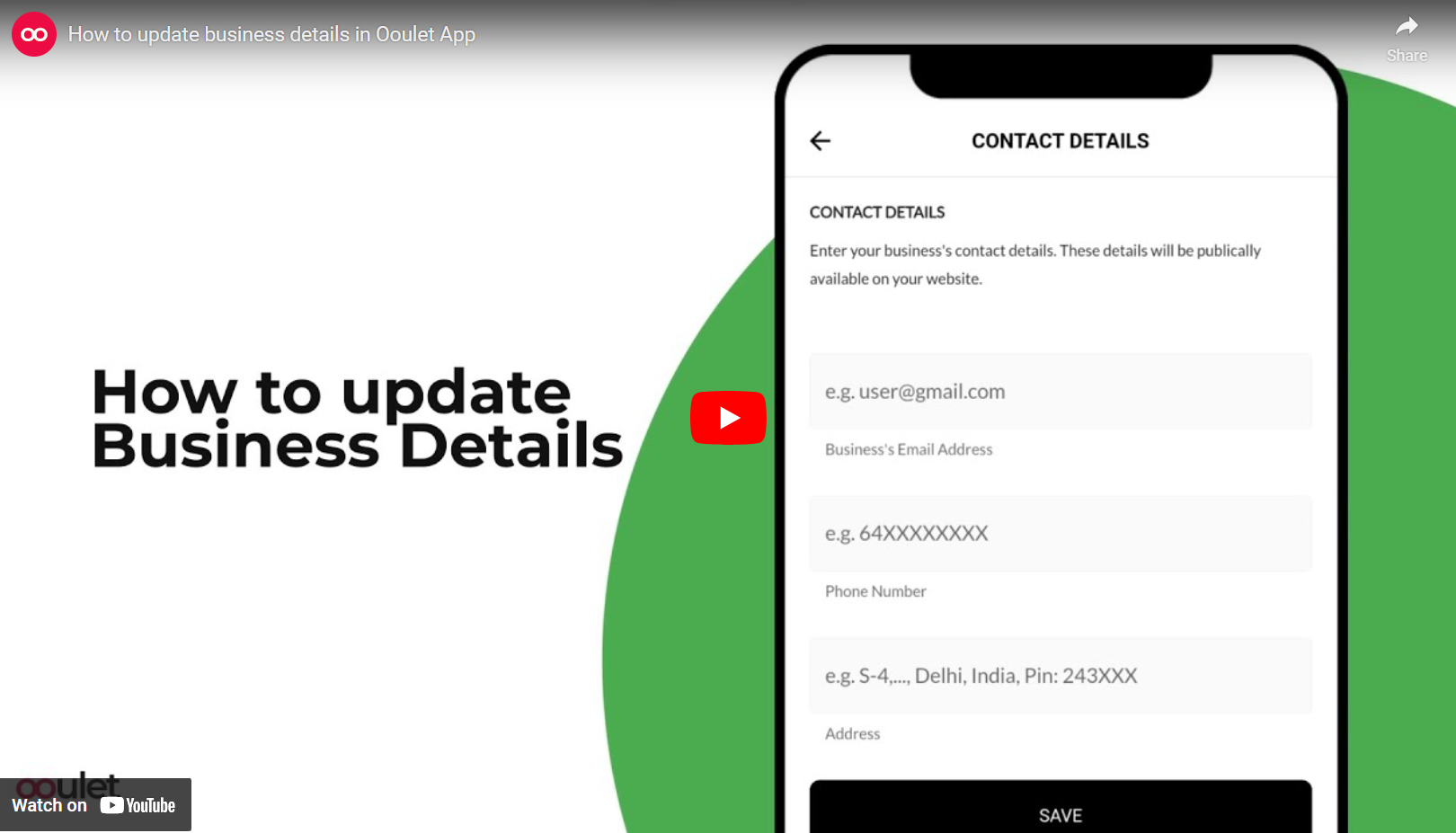 - Enter Business e-mail, Enter Phone Number, Enter Store Address. Click on Save Button.