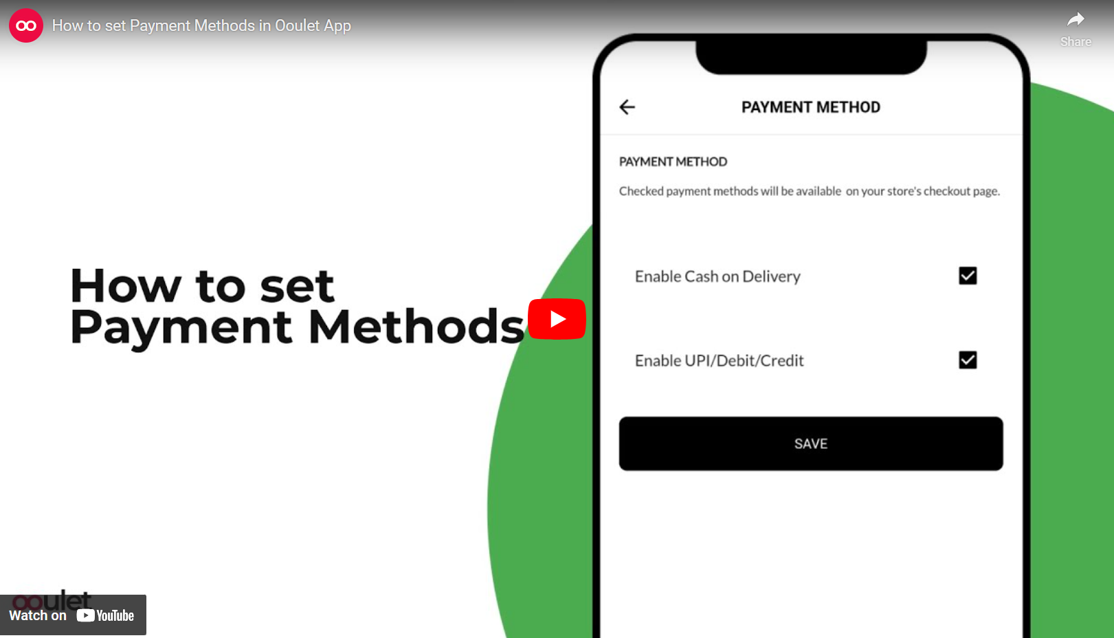 - You can Enable/Disable Payment Methods (COD, UPI, Debit/Credit card) by Clicking on check boxes and Click on Save Button.